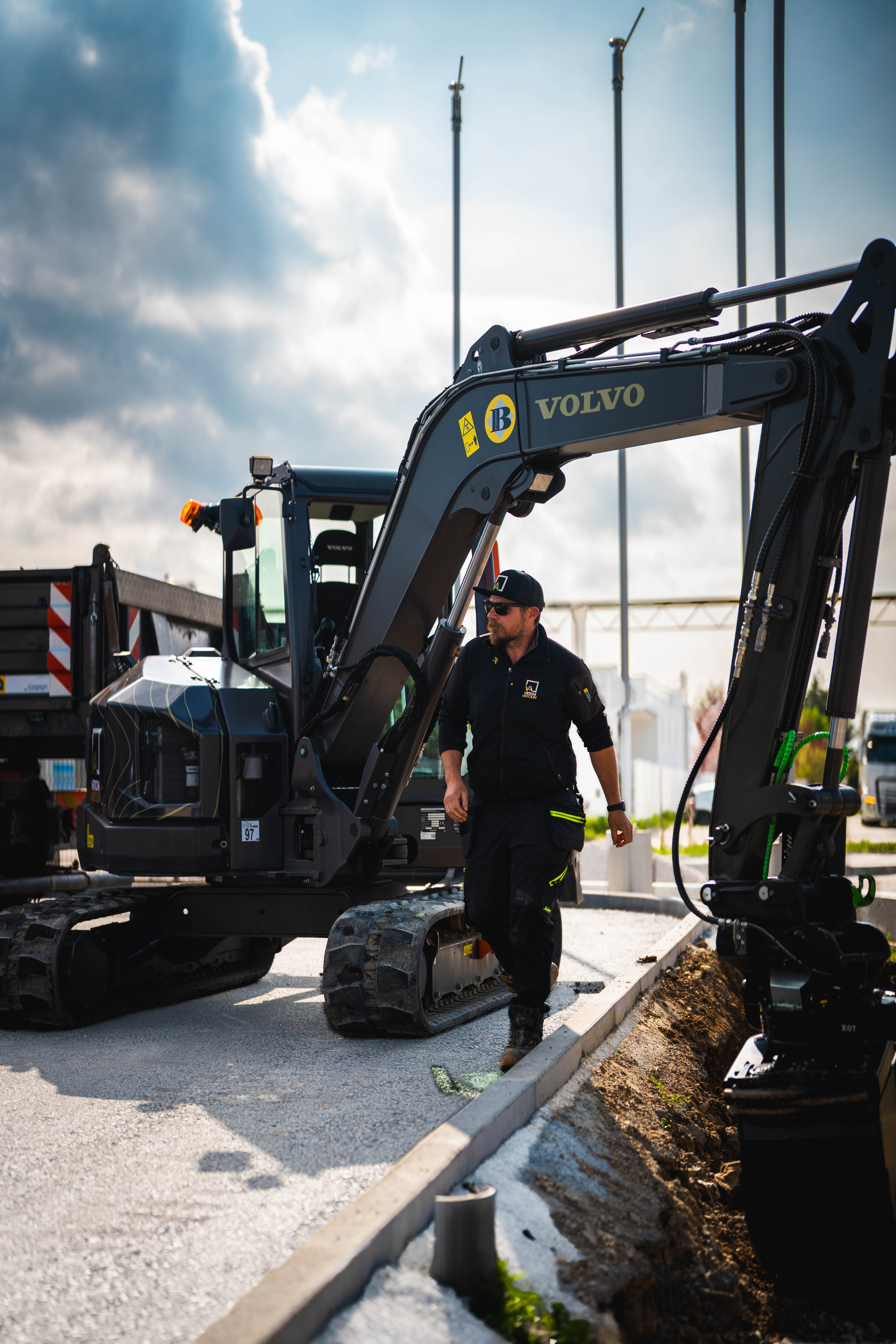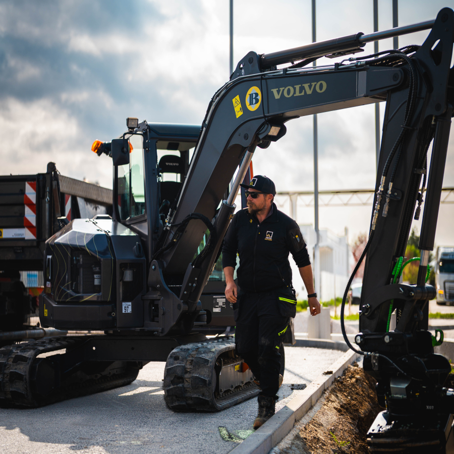 Za natančno izvajanje nalog imamo na voljo dva bagerja (6t in 1,5t), ki sta dovolj ozka za dostop do težko dostopnih območij. Z uporabo rototilit priključkov smo do 40 % bolj učinkoviti pri načrtovanju terena in strokovni zasaditvi dreves. Uporabljamo tudi posebno orodje za zasaditev velikih dreves, kar omogoča varno in natančno izvedbo.